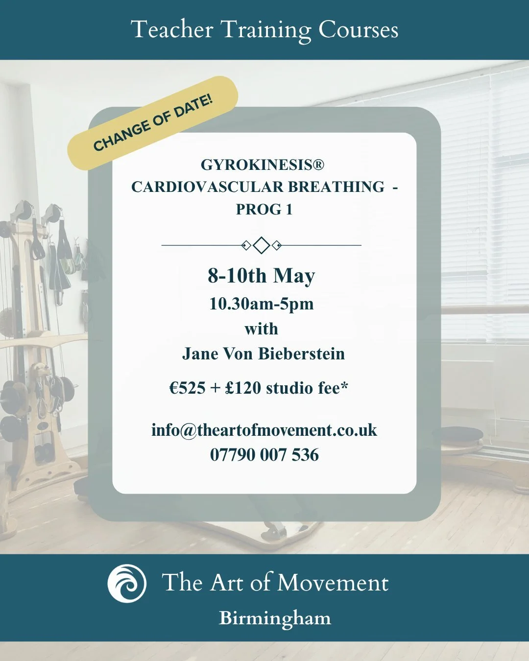 I have been a fully licensed GYROTONIC® instructor since 2009, with advanced training in therapeutic applications, spinal conditions, pelvis and shoulder work, scoliosis exercise, and pre‑ and postnatal movement.